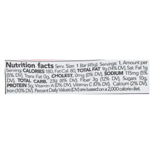 88 acres apple and ginger craft seed bar granola bar is made with the 88 acres seed blend of organic sunflower, pumpkin and flax seeds. Also in this granola bar is maple syrup, organic raisins, unsulphured apples, organic crystallized ginger, pumpkin pie spice and sea salt. Each 1.6 oz. Bar has 180 calories and 9 g. Total fat.