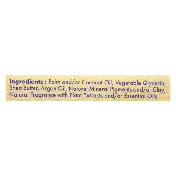 ingredients : palm and/or coconut oil;vegetable glycerin;shea butter;argan oil;natural mineral pigments and/or clay;natural fragrance with plant extracts and/or essential oils