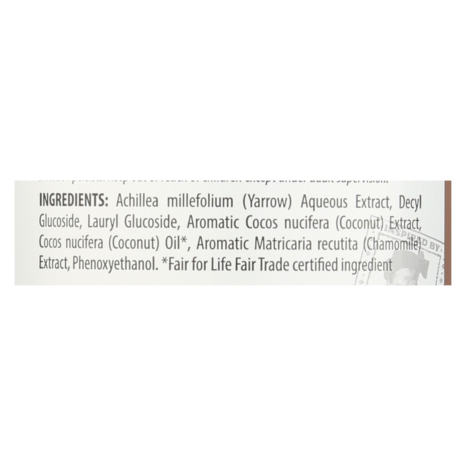 ingredients : achillea millefolium;yarrow;aqueous extract;decyl glucoside;lauryl glucoside;cocos nucifera;coconut;extract;oil;aromatic matricaria recutita;chamomile;phenoxyethanol
