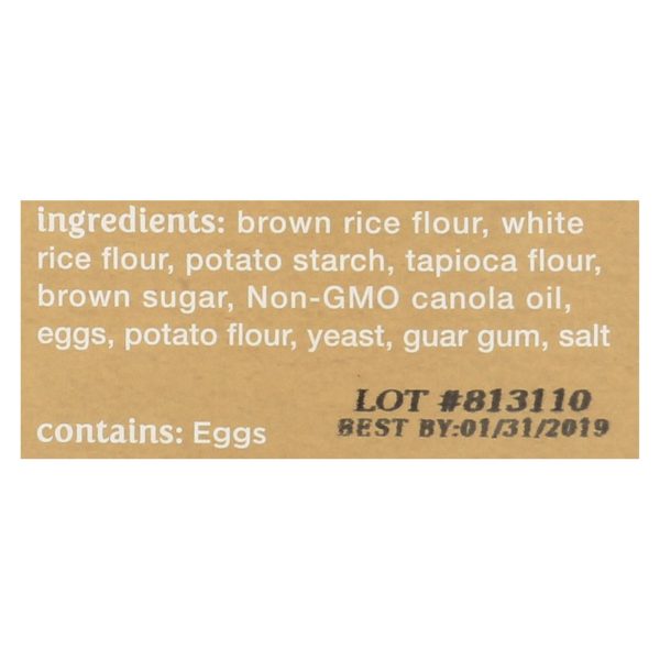 ingredients : brown rice flour;white rice flour;potato starch;tapioca flour;brown sugar;non-gmo canola oil;eggs;potato flour;yeast;guar gum;salt