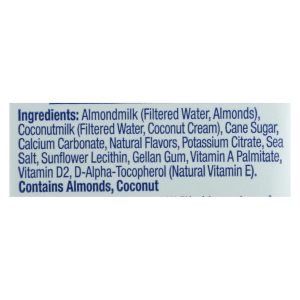 ingredients : almondmilk;filtered water;almonds;coconutmilk;coconut cream;cane sugar;calcium carbonate;natural flavors;potassium citrate;sea salt;sunflower lecithin;gellan gum;vitamin a palmitate;vitamin d2;d-alpha-tocopherol;natural vitamin e