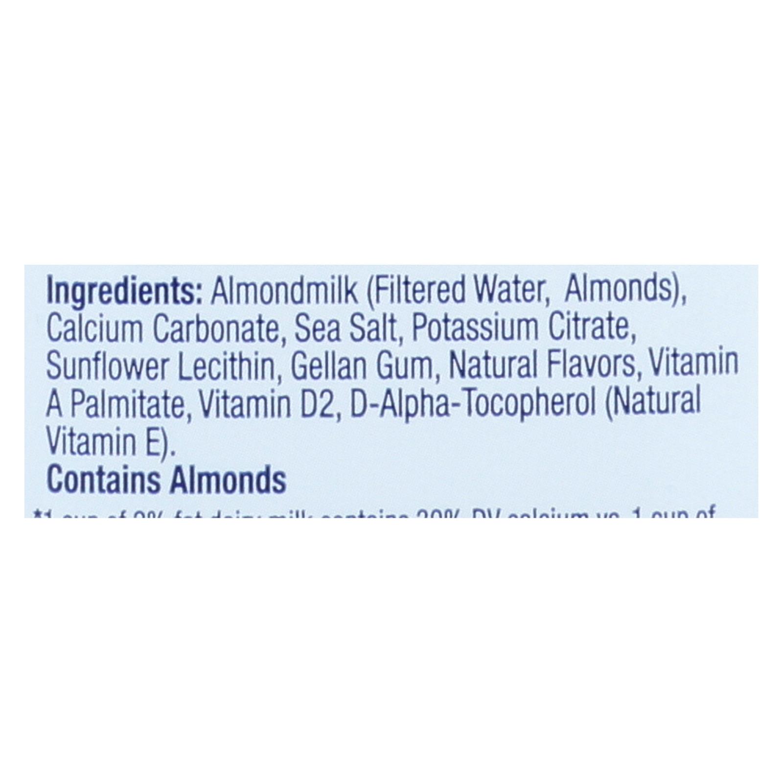 ingredients : almondmilk;filtered water;almonds;calcium carbonate;sea salt;potassium citrate;sunflower lecithin;gellan gum;natural flavors;vitamin a palmitate;vitamin d2;d-alpha-tocopherol;natural vitamin e