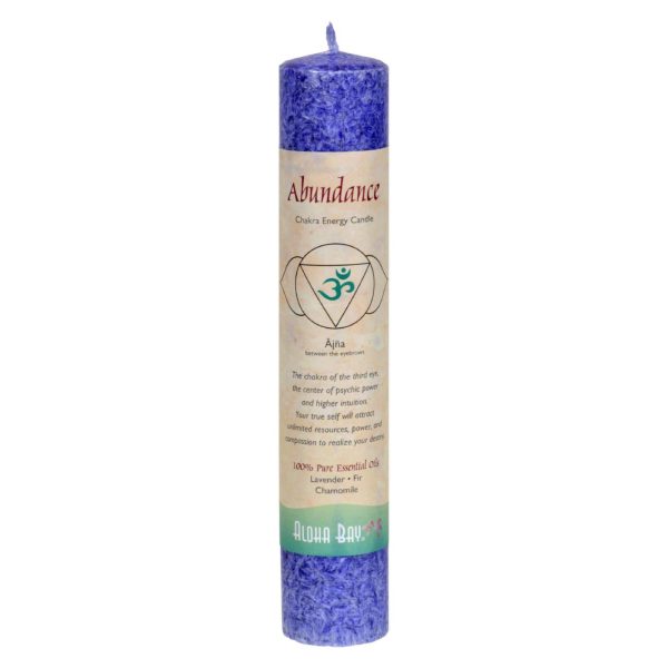Aloha bay chakra pillar candle abundance indigo description: essential oils: lavender, fir, and chamomile the chakra of the third eye, the center of psychic power and higher intuition. Your true self will attract unlimited resources, power, and compassion to realize your destiny. Energy pillars with 100% pure essential oils burn time: 15 hours palm wax 8″ tall at aloha bay, we believe in the wealth of fragrance found in nature – pure flower and plant essences with the power to revive or soothe, heal or protect. These energy pillars are infused with essential oils selected for their aromatherapy benefits relative to balancing each chakra. Eco palm wax from united plantations and golden hope plantations is no threat to rainforests or orangutans’ ecosystems. We prefer palm based candles to genetically modified, chemically distilled, commercially grown soy wax. Palm oil uses one-tenth of the land as compared to soy production and is a sustainable tree crop that enhances biodiversity and carbon sequestering. In 1993, aloha bay began manufacturing and wholesaling hand dipped paraffin tapers, painted with palm wax. These beautiful tapers are still popular in the gift industry. And in 1997, we developed the first 100% palm wax votives and richly scented jar candles. Over the years, we have expanded our use of pure essential oils and have become a wholesale supplier to the natural food industry. Aloha bay has continued to experiment with every type of vegetable wax (soy, coconut, rice bran, carnauba, candelilla, bayberry, jojoba and even castor oil). We have found that palm wax makes the best candles. Most vegetable waxes (e.g. Soy wax) are too soft and oily to be used by themselves, so they are often mixed together with large percentages of palm wax. Disclaimer these statements have not been evaluated by the fda. These products are not intended to diagnose, treat, cure, or prevent any disease.