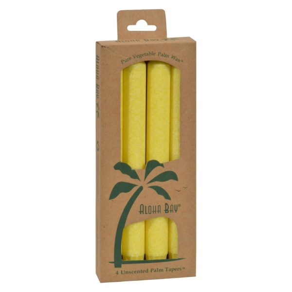 Aloha bay palm tapers yellow candle unscented description: 9″ tall burn time 9 hrs distinquish your home naturally with crystalline beauty of palm wax. Disclaimer these statements have not been evaluated by the fda. These products are not intended to diagnose, treat, cure, or prevent any disease.