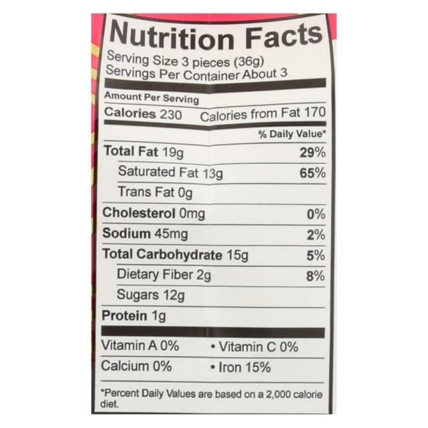 Alter eco’s organic sea salt truffles are made with 8 simple ingredients that are certified fair trade and organic. It’s a crowd pleaser made with pure coconut oil. Sea salt truffles are vegan and have no soy or gluten. You get 3 servings in each 4.2 oz. Package that are 3 pieces to a serving with 230 calories. Our pure organic coconut oil comes from kerala fair trade alliance on india’s malabar coast. Nourishing foodie, farmer and field through sustainable foods from around the world.
