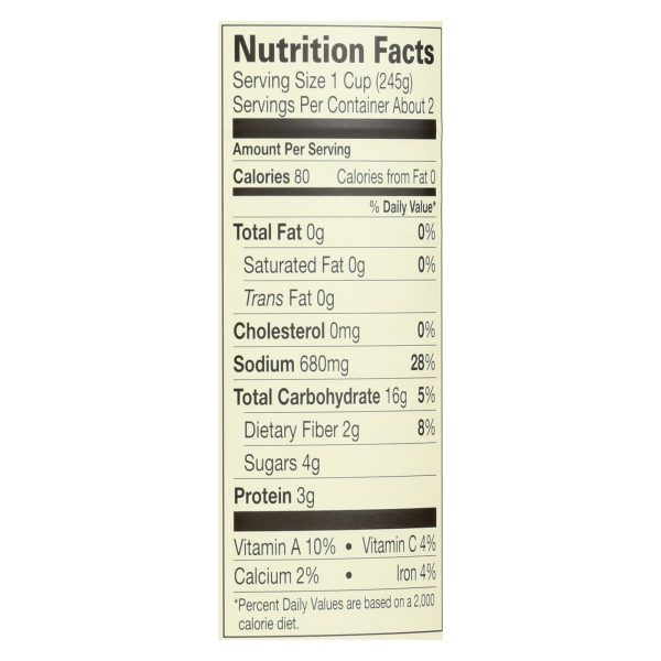 ingredients : filtered water;organic tomato puree;organic carrots;organic potatoes;organic corn;organic pasta (organic semolina flour, water);organic green beans;sea salt;organic onions;organic cane sugar;organic black pepper