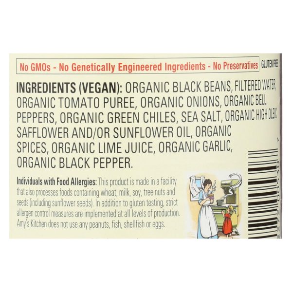 Amy’s organic medium black bean chili is a cozy, low-fat meal for those looking to reconnect with natural, simple ingredients. Full of flavor and not too spicy, our 14.7 oz. Can of chili is crafted with organic black beans, tomato puree, onions, bell peppers and green chiles. Each can of gluten-free, all-vegan chili contains absolutely no preservatives while being packed with 13 grams of both dietary fiber and protein per serving. Our chili is usda-certified organic, non-gmo and is packaged in non-bpa lined cans, so you can be sure that what you get is the real deal. See nutritional facts panel for allergens. Amy’s kitchen has grown beyond the berliner family’s wildest dreams, going from several family members pitching in anywhere they can, to a wonderful group of employees, farmers and suppliers. But no matter how big the company grows, one thing will always remain the same—the family spirit that permeates every decision made inside of amy’s kitchen.