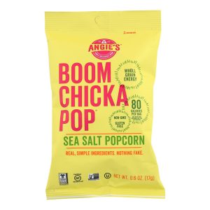 Angie’s boomchickapop popcorn, sea salt is a snack you can feel good about. This flavorful popcorn is made with real ingredients found in a kitchen, not in a lab. A snack packed with energy, not guilt, this popcorn is kosher, vegan, gluten-free and non-gmo. This popcorn is packed in bright bags that radiate all the love and fun that went into them from the beginning. Each bag of angie’s boomchickapop popcorn, sea salt contains 0.6 oz. Of always real popcorn.