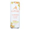 No calories. No sugars. No carbs. Vitamins b5, b6, b12 & c. L-carnitine. Biotin. Niacin. Low gi (glycemic index). Natural caffeine: 80 mg per can. Like a cup of coffee. Vegan. Soy-free. Gluten-free. Non-gmo. Ultra-premium green tea. Guarana seed extract. Healthy energy. Calorie burning. Lightly sparkling and refreshing. Good for you never tasted so good! great tasting healthy energy that burns calories too. Jump start your healthier lifestyle with aspire. Vitamins, nutrients, natural caffeine and antioxidants give you energy and focus. A great tasting, every day lift with slow-releasing natural caffeine that leaves you with no jittery feeling or crash. Created by nutritionists, aspire fuels metabolism through thermogenics, helping your body burn calories. Usa.aspiredrinks.com. Facebook: aspiredrinksusa. Instagram (at)aspiredrinks_usa. Twitter (at)aspiredrinksusa. Please recycle. Made in the usa.