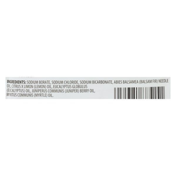 ingredients : sodium borate;sodium chloride;sodium bicarbonate;abies balsamea;balsam fir;needle oil;citrus x limon;lemon;oil;eucalyptus globulus;eucalyptus;juniperus communis;juniper;berry oil;myrtus communis;myrtle