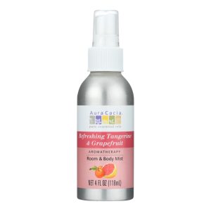 Aura cacia refreshing tangerine & grapefruit aromatherapy mist is a cheering and refreshing room and body mist. Breath in the luscious and zesty-sweet aroma of a tall glass of freshly juiced citrus and let this mist delight the senses, refresh the body and lift the spirit. Made from 100% pure essential oils, this mist has not been tested on animals and is free of parabens, petroleum and synthetic ingredients. Each bottle of aura cacia refreshing tangerine & grapefruit aromatherapy mist contains 4 fl. Oz. Of product. See label for warnings.