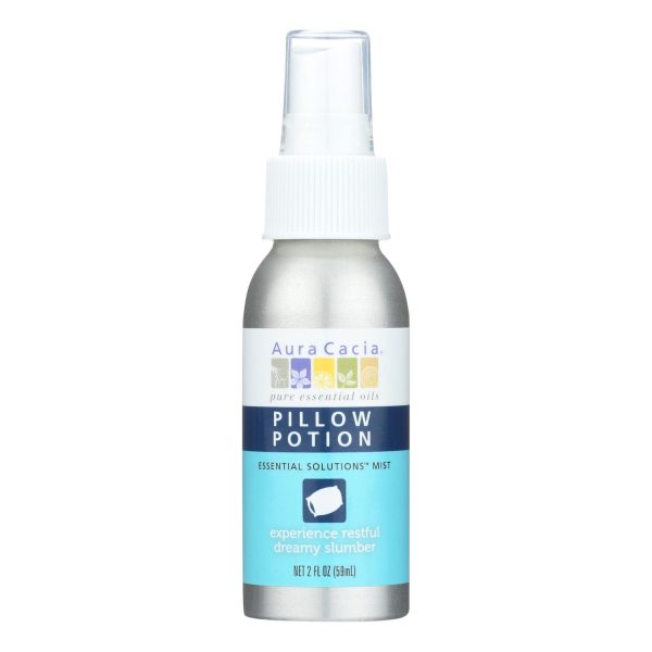 Aura cacia pillow potion essential solutions mist is a refreshing option for pure aromatherapy. Featuring calming lavender, soothing yarrow and hops to quiet your mind and settle your senses, this mist lets you experience a restful, dreamy slumber. Arise from dream time refreshed and ready for life with this mist that has not been tested on animals and does not contain synthetic ingredients. The suggested use for this blend is as a pillow, bed sheet and airspace mist. Each bottle of aura cacia pillow potion essential solutions mist contains 0.5 fl. Oz. Of product. See label for warnings.