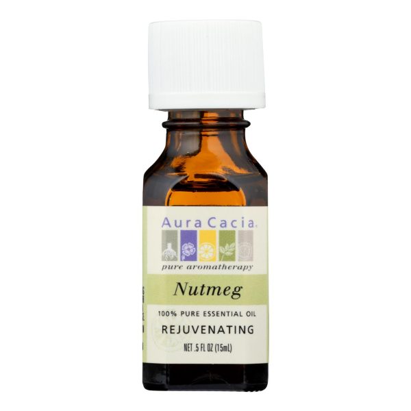 Aura cacia essential oil, nutmeg is a warm, spicy oil that has beneficial properties. This rejuvenating oil is perfect in a wake-up or motivating diffusion. This 100% pure essential oil must be diluted properly since it may irritate the skin. Each bottle of aura cacia essential oil, nutmeg contains 0.5 fl. Oz. Of product. See label for warnings.