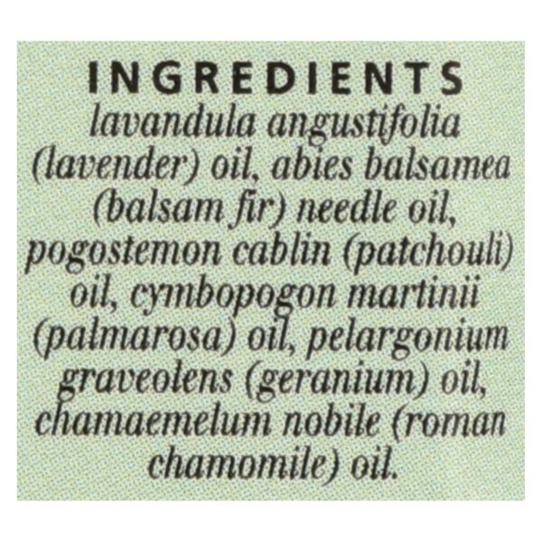ingredients : lavandula angustifolia;lavender;oil;abies balsamea;balsam fir;needle oil;pogostemon cablin;patchouli;cymbopogon martinii;palmarosa;pelargonium graveolens;geranium;chamaemelum nobile;roman chamomile