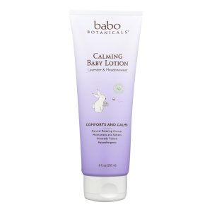 With pure plant and flower extracts, babo botanicals moisturizing lotion, lavender meadowsweet is a calming baby lotion that contains the soft, soothing scent of french lavender, rose and chamomile to relax, soothe and facilitate a more restful sleep. This gentle, hypoallergenic formula also contains meadowsweet oil to gently moisturize delicate skin. Ideal for baby, and others with sensitive and dry skin, each 8 oz. Bottle of babo botanicals moisturizing lotion, lavender meadowsweet contains the nutri-soothe complex, which is rich in vitamins and antioxidants from a combination of chamomile, watercress, kudzu, and calendula. This product is vegan, and it’s also free of soy and gluten. See the label for warnings.