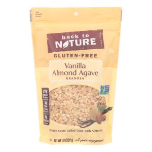 Back to nature vanilla almond agave granola ensures your family has a tasty, nutritious choice for breakfast or on-the-go snacking at any time of the day. It’s naturally flavored with vanilla and agave syrup and is packed with almond flakes for additional protein goodness. Whole grain rolled oats supply fiber to keep your digestive system working well. This 11 oz. Bag of cereal contains no artificial flavors, colorings or preservatives and is non-gmo project verified for your peace of mind.