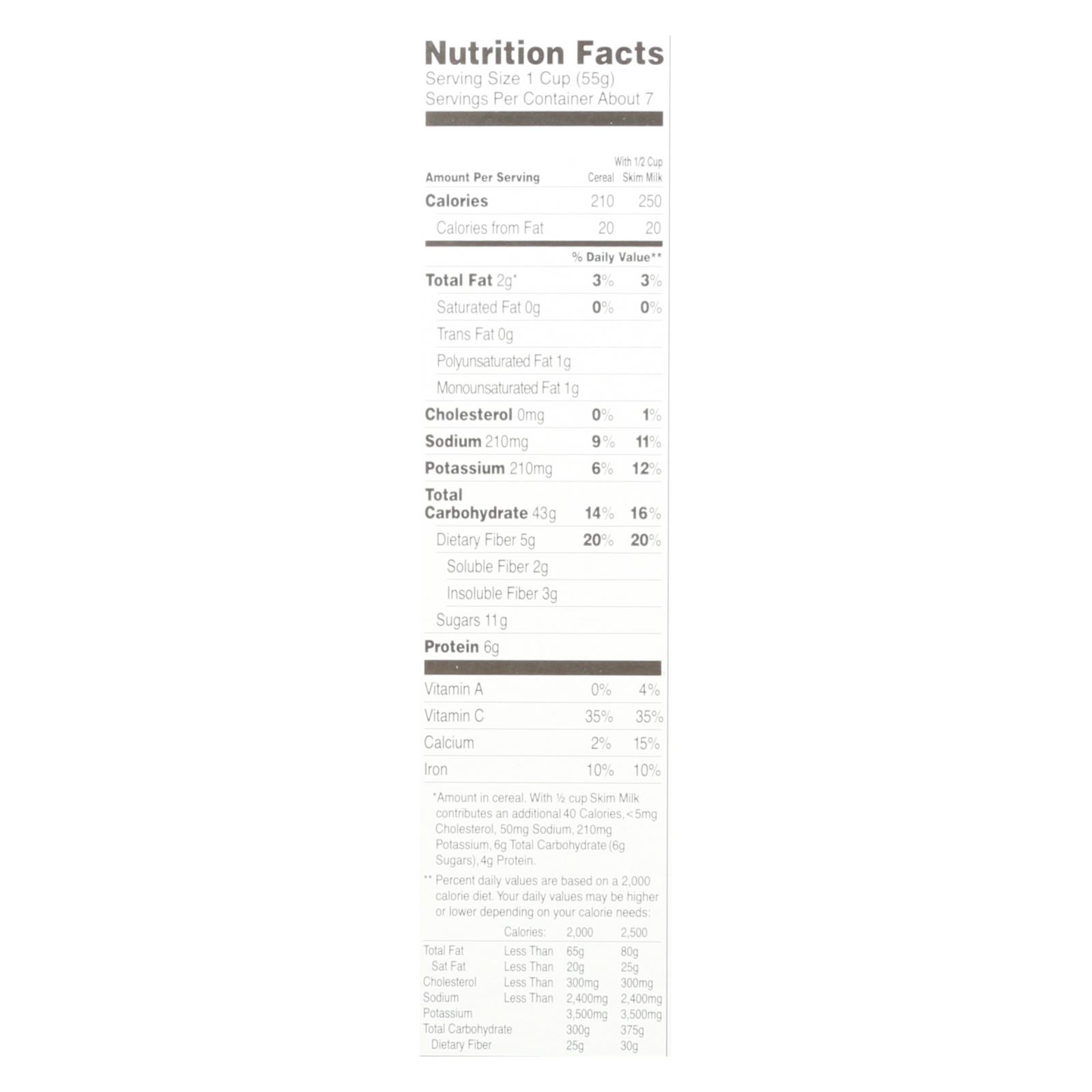 Barbara’s morning oat crunch cereal, original is simply delicious, and each bowl is packed with the whole grains, protein and fiber that your body needs. The wholesome crunch will keep you satisfied so that you can enjoy the day ahead. Here at barbara’s, we believe in better. We believe in better health and better taste. We believe in better breakfasts and better snacks–ones full of flavor and not sugar. We believe in better ingredients that are simple and wholesome. Each box contains 14 oz. Of cereal, and there is 7 grams of protein, 42 grams of whole grains and 5 grams of fiber per serving. See the nutrition facts panel for allergens.