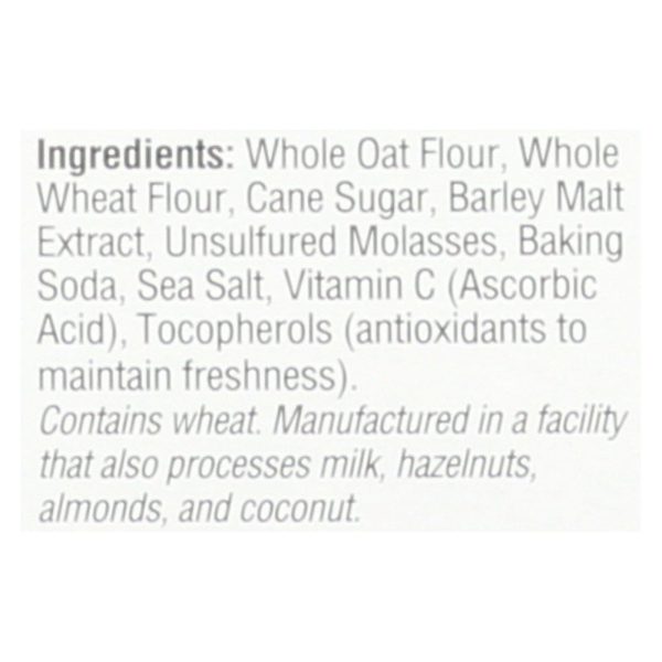 ingredients : whole grain oats;whole grain wheat;cane sugar;unsulfured molasses;pea protein concentrate;sea salt;baking soda;barley malt extract;tocopherols;antioxidants to maintain freshness