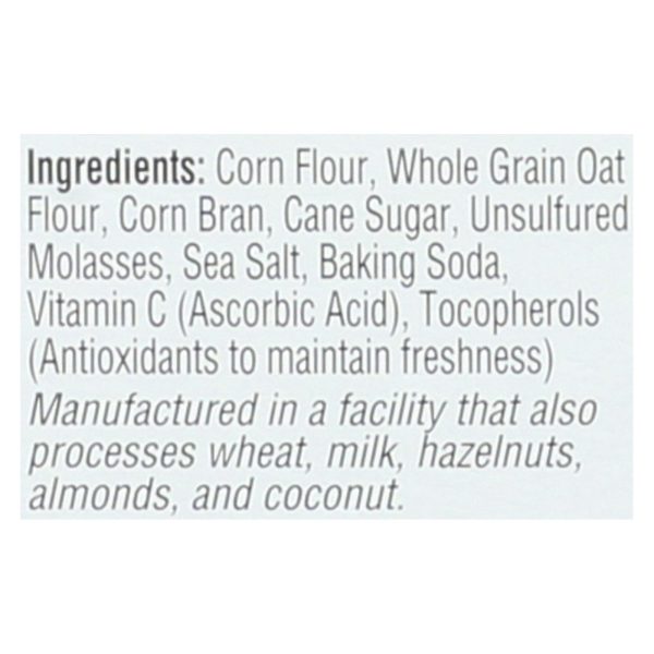 ingredients : corn flour;whole grain oat flour;cane sugar;oat fiber;unsulfured molasses;corn bran;sea salt;baking soda;vitamin c;ascorbic acid;tocopherols;antioxidants to maintain freshness