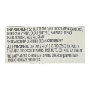 ingredients : fair trade dark chocolate (cacao beans , dried cane syrup , cacao butter );bananas ;tapioca maltodextrin ;natural glaze