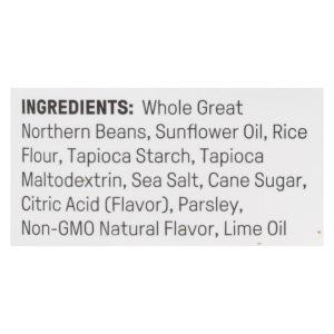 Beanitos chips white bean hint of lime are a snack you can feel great about eating. Crafted of whole navy beans, pure sunflower oil, long grain rice, sea salt, delicious spices and seasonings, these yummy chips contain 5 g. Of complete protein per serving along with fiber and antioxidants. Beanitos turned one of the world’s favorite superfoods into a piquant finger food with infinite snacking possibilities. Each bag contains 6 oz. Or 170 g of mouth-watering chips. See nutrition facts panel for allergens. There is nothing artificial ever in the beanitos formula. Wholesome, thoroughly enjoyable snacking can be yours again.