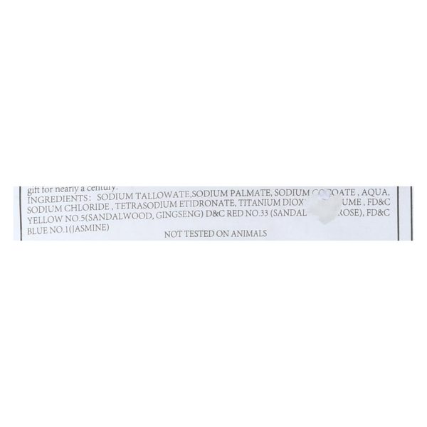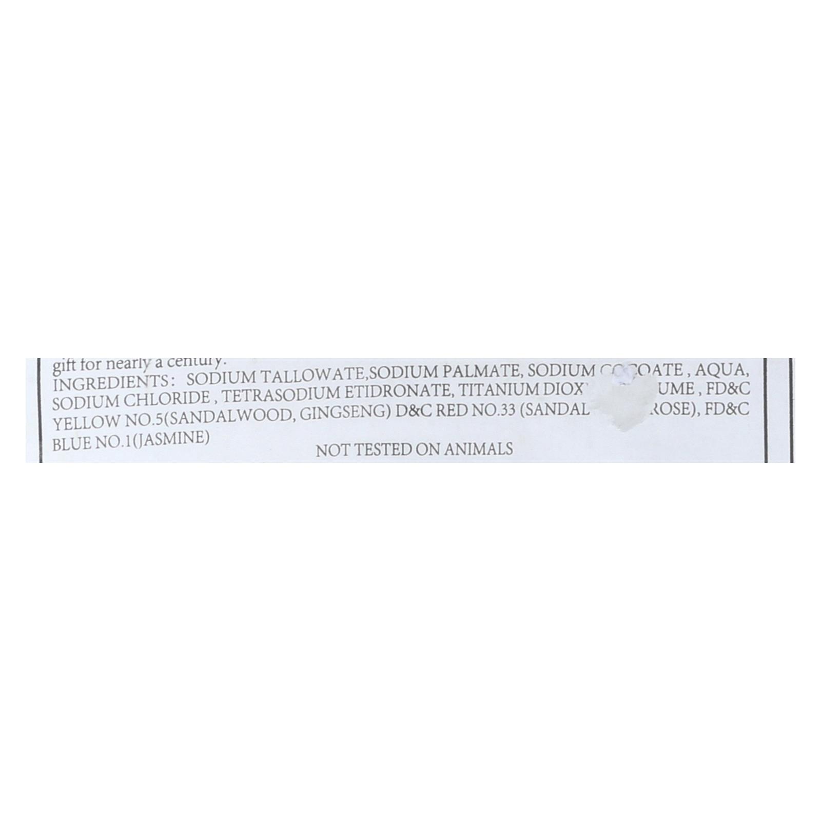 ingredients : sodium tallowate;sodium palmate;sodium cocoate;aqua;sodium chloride;tetrasodium etidronate;titanium dioxide;perfume;fd&c yellow no. 5;sandalwood;ginseng;d&c red no. 33;rose;fd&c blue no. 1;jasmine