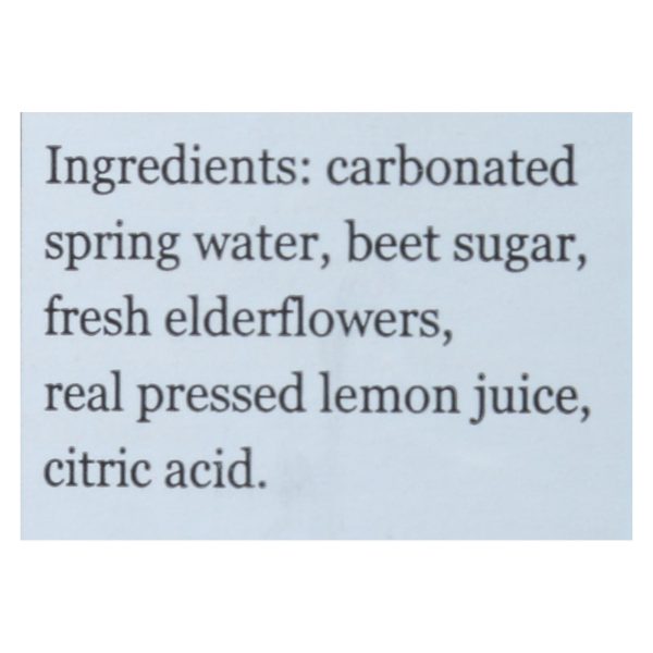 ingredients : carbonated spring water;beet sugar;fresh steeped elderflowers;pressed lemon juice;citric acid