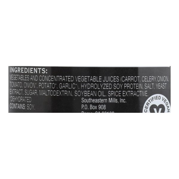 ingredients : vegetables and concentrated vegetable juices (carrot, celery, onion, tomato, onion*, potato*, garlic*);hydrolyzed soy protein;salt;yeast extract;sugar;maltodextrin;soybean oil;spice extractive