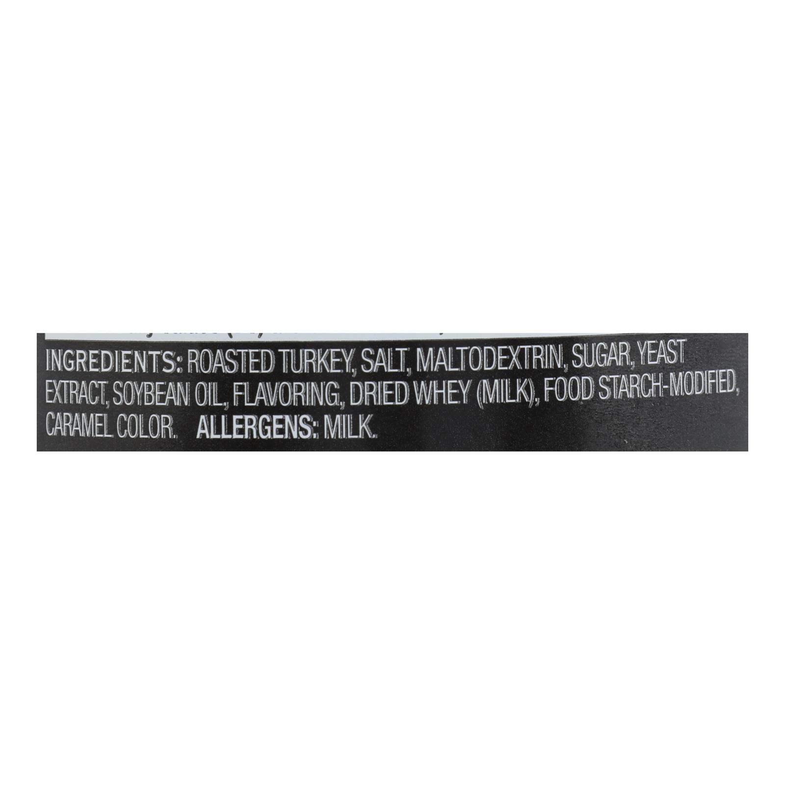 ingredients : roasted turkey;salt;maltodextrin;sugar;yeast extract;soybean oil;flavoring;dried whey (milk);food starch-modified;caramel color