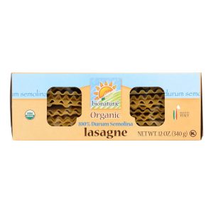 Bionaturae organic semolina lasagna, 100% durum semolina is made by the third generation of a family of pasta makers, who mastered the art of making artisan pasta over a century ago. This kosher friendly pasta is made from organic durum wheat that has been freshly milled for each production. You can really see and taste the difference. Each box of bionaturae organic semolina lasagna, 100% durum semolina contains 12 oz. Of product. See nutrition facts panel for allergens.