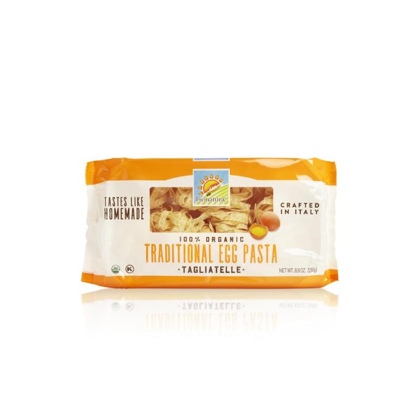 Bionaturae pasta, egg pasta is the very replica of the italian mother’s homemade pasta. In italy, enjoying a delicious meal of wholesome foods with family and friends is an integral part of each person’s life and well-being. These 100% organic tagliatelle noodles are made with pasteurized eggs from hens that are raised without the use of growth hormones or antibiotics and are fed a pesticide-free, vegetarian diet. Make every meal a special occasion with this kosher old-world treat. Each bag of bionaturae pasta, egg pasta contains 8.8 oz. Of product. See nutrition facts panel for allergens.