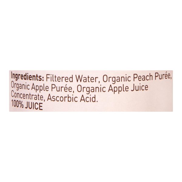 ingredients : filtered water;organic peach puree;organic apple puree;organic apple juice concentrate;ascorbic acid