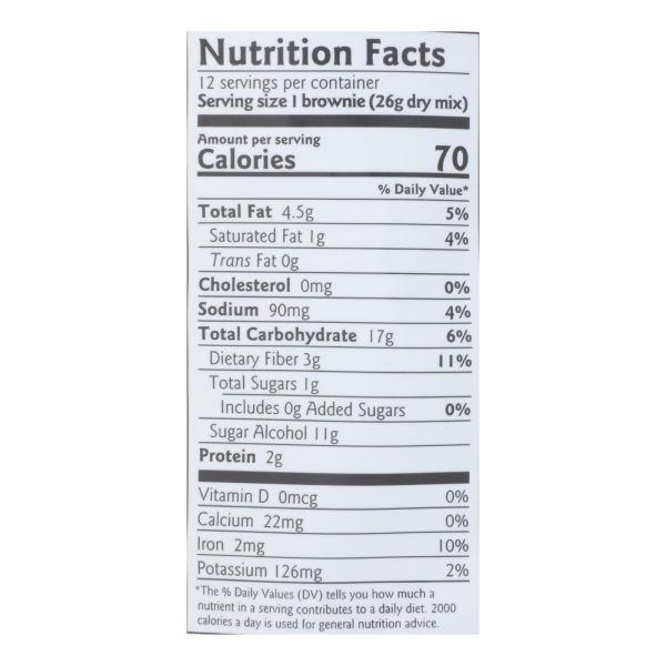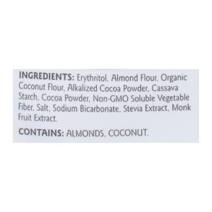 ingredients : erythritol;almond flour;organic coconut flour;alkalized cocoa powder;cassava starch;cocoa powder;non-gmo soluble vegetable fiber;salt;sodium bicarbonate;stevia extract;monk fruit extract