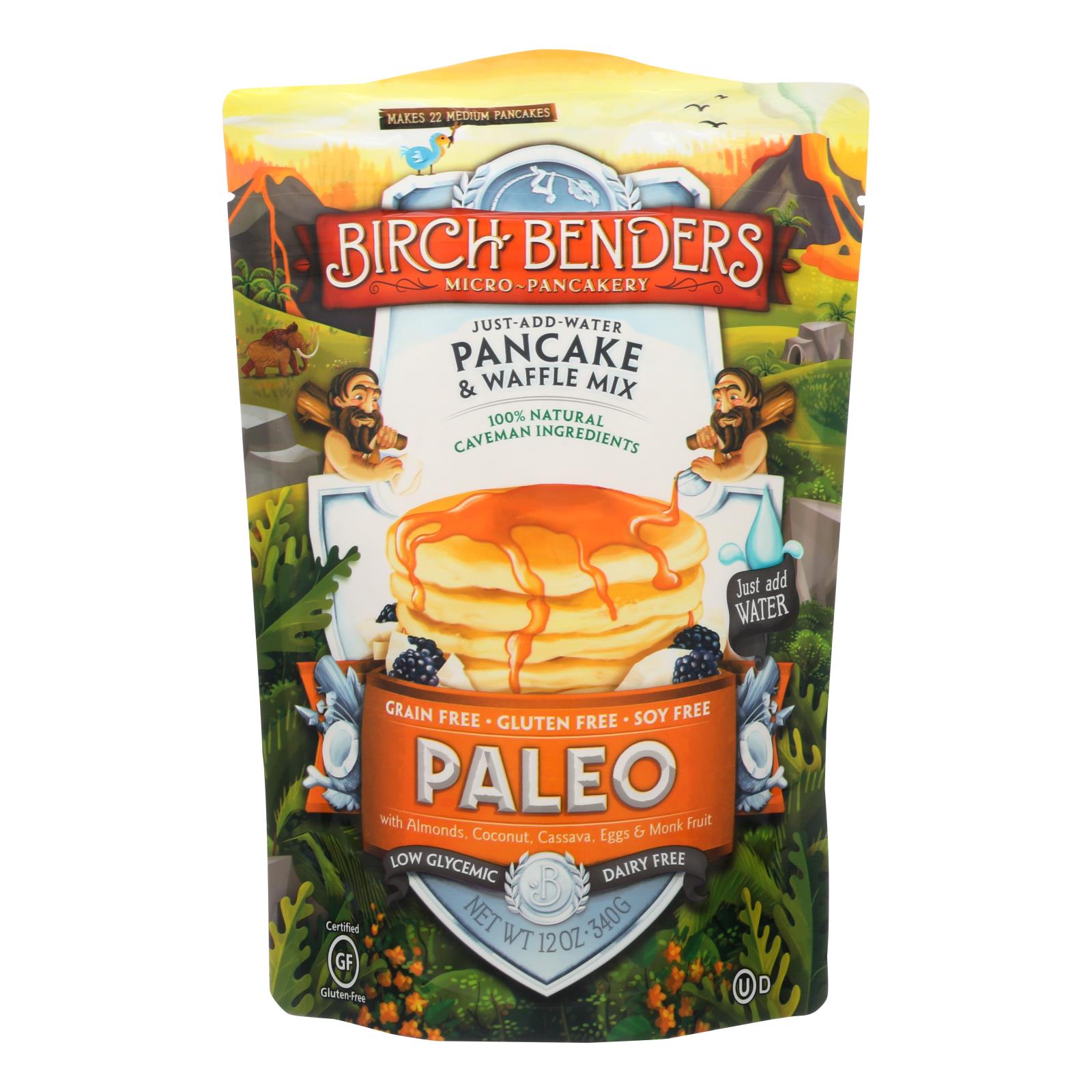 Birch bender’s paleo pancake and waffle mix is the perfect paleo mix. They are all-natural, non-gmo, kosher, grain and soy free. There is no better way to start your day than a fat free, no cholesterol pancake. This is a simple easy to use mix, just add water. This paleo pancake and waffle mix is a good source of calcium, iron and fiber. Includes 12 oz. Bag of pancake mix. Why paleo? before the culture of agriculture, our ancestors thrived on the earth’s natural bounty. Return to mother nature’s kitchen and discover the power of paleo.