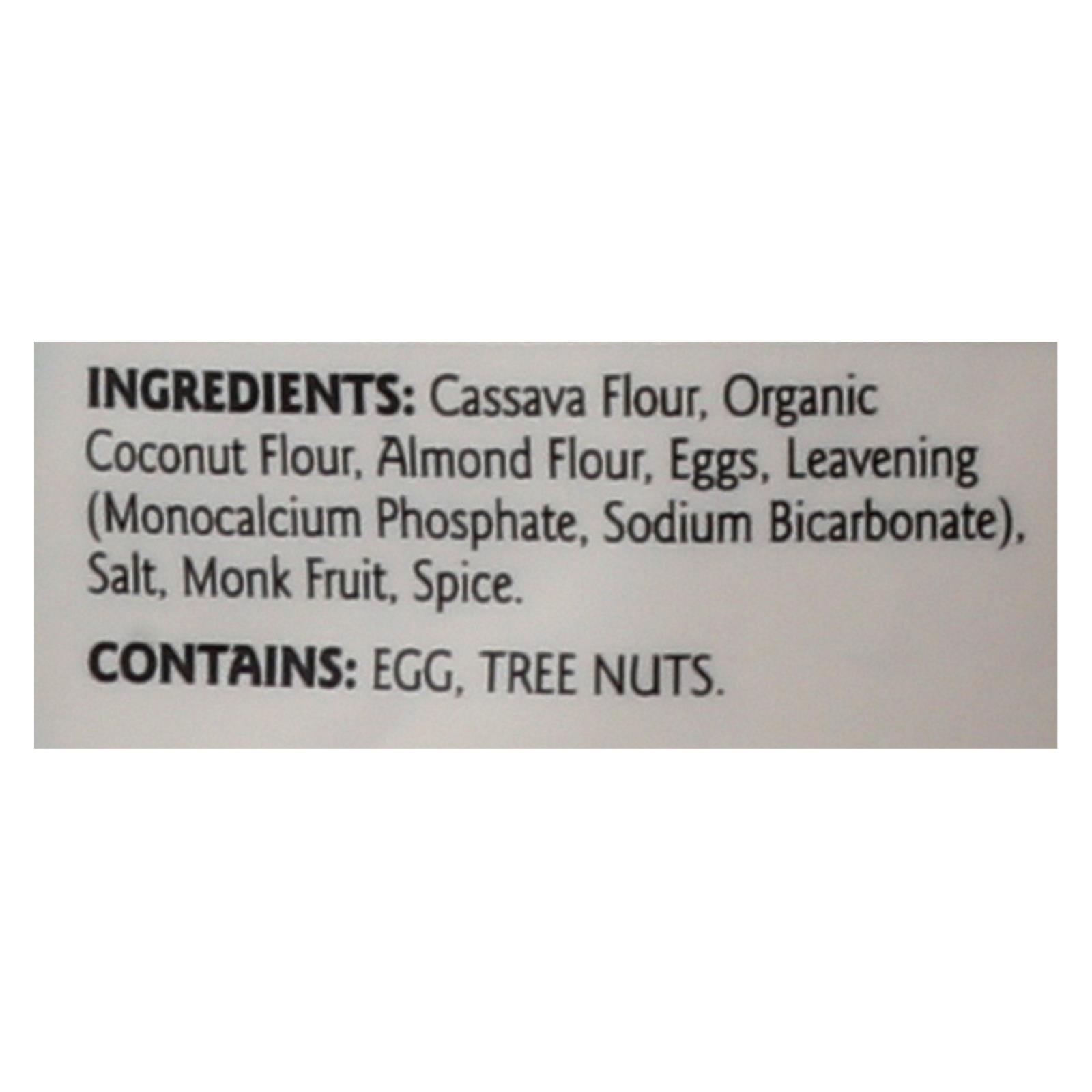 ingredients : cassava flour;organic coconut flour;almond flour;eggs;leavening;monocalcium phosphate;sodium bicarbonate;salt;monk fruit;spice