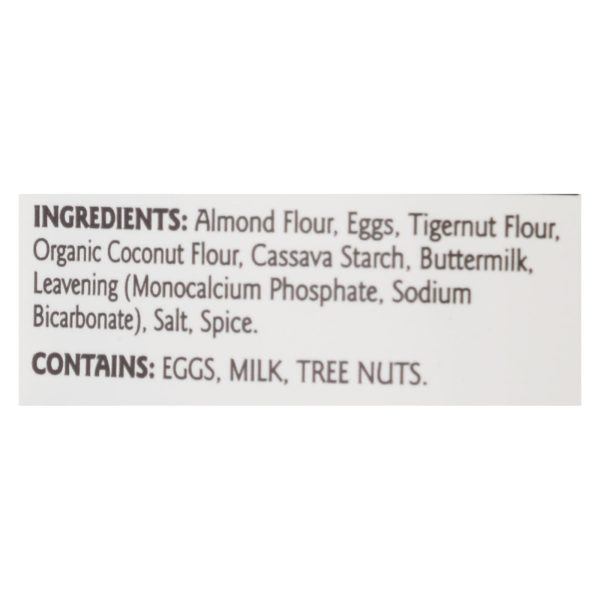 ingredients : almond flour;eggs;tigernut flour;organic coconut flour;cassava starch;buttermilk;leavening;monocalcium phosphate;sodium bicarbonate;salt;spice