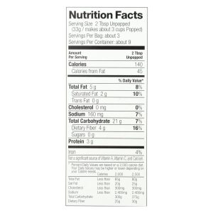 Natural and unflavored with only a touch of salt, black jewell microwave popcorn is a convenient way to enjoy a fun and healthy snack. Pops pure white, contains protective antioxidants, 100 percent natural grain, gluten free and non-gmo verified.