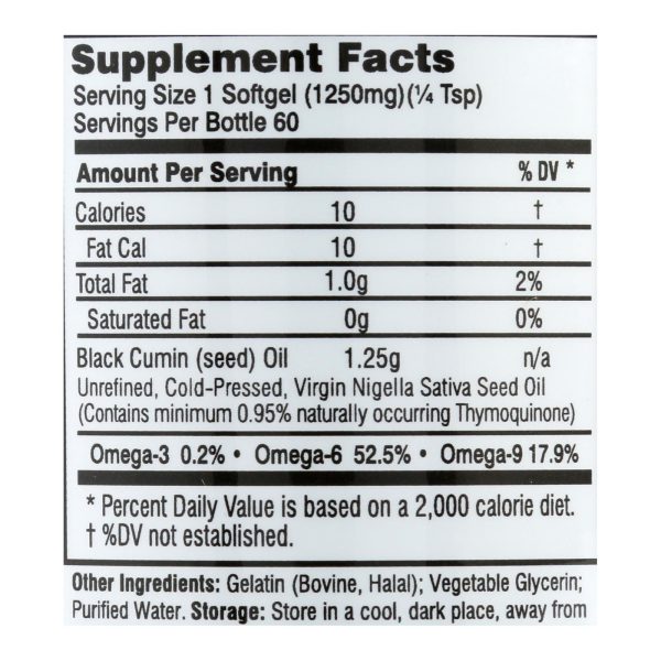 Black Seed Oil – 1250 Mg – 60 Softgel Capsules