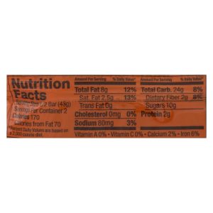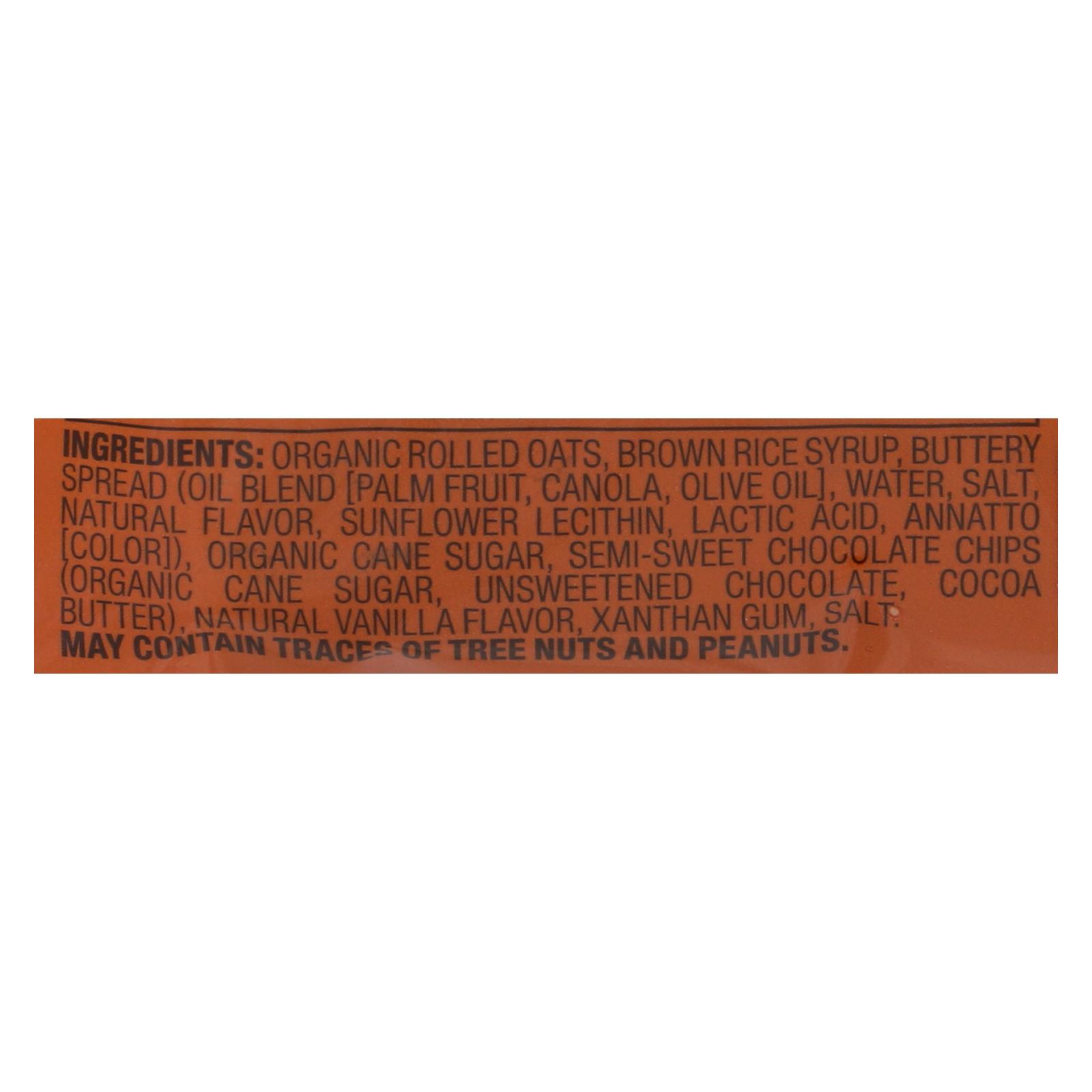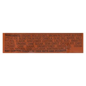 ingredients : whole grain rolled oats;brown rice syrup;coconut oil;cane sugar;chocolate chips (sugar, chocolate liquor, cocoa butter, vanilla extract);vegetable glycerin;sea salt;xanthan gum;natural vanilla flavor;vitamin e (for freshness)