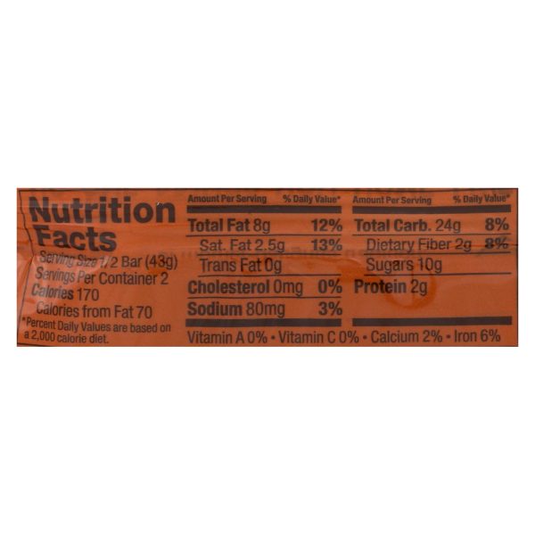 Bobo’s oat bars, chocolate chip are a convenient and delicious treat, great for on-the-go snacking. Made with all natural ingredients, bobo’s oat bars are free of unnatural and unnecessary additives, giving you a healthy energy boost throughout the day. These bars are conveniently sized and packaged, allowing you to take them wherever you need to go. This product is gluten-free, kosher and vegan friendly. Each package of bobo’s oat bars, chocolate chip weighs 3 oz. With 170 calories per bar. See nutrition facts panel for allergens.
