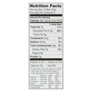 ingredients : organic whole grain rolled oats;brown rice syrup;organic coconut oil;organic cane sugar;chocolate;unsweetened chocolate;cocoa butter;peanuts;vegetable glycerin;xanthan gum;salt;vitamin e;for freshness