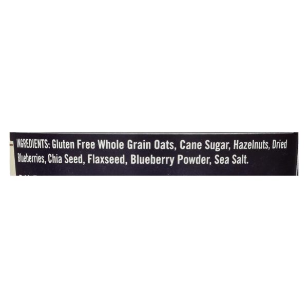 ingredients : gluten free whole grain oats;cane sugar;hazelnuts;dried blueberries;chia seeds;flaxseed;blueberry powder;sea salt