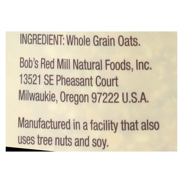 World’s best oatmeal – good source of fiber: our gluten free quick cooking rolled oats are rolled thin to shorten the cooking time, so a tasty bowl of whole grain oatmeal is just minutes away. Each batch is handled with care in our dedicated gluten free facility and tested in our state-of-the art laboratory to ensure our strict gluten free quality standards are met. You can see our quality. To your good health – bob moore. An employee-owned company. 100% whole grain: 45 g or more per serving. 100% of the grain is whole grain. Wholegrainscouncil.org. Resealable package. Tested and confirmed gluten free in our quality control laboratory. Dear friends, what we eat in the morning makes all the difference in how we get through the rest of the day. A bowl of nutritious whole grain oatmeal starts you off right and keeps your hunger at bay throughout the morning. In my view, no food on earth is better! to your good health, bob moore. Sourced non-gmo pledge: for more information on our sourced non-gmo pledge, visit bobsredmill.com/non-gmo. Top it off! find scrumptious topping suggestions at bobsredmill.com/oatmeal. For information and recipes, visit bobsredmill.com.