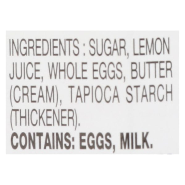 ingredients : sugar;lemon juice;whole eggs;butter (cream);tapioca starch (thickener)