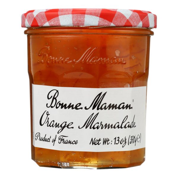 Bonne maman preserves, orange marmalade is an all-natural fruit spread. This kosher, gluten-free and non-gmo preserve is a product of france. Made with sugar, orange peels, cane sugar concentrated lemon juice and fruit pectin, this delicious preserve is a simple and versatile product. This fruit spread is a must-have for every home. Each jar of bonne maman preserves, orange marmalade contains 13 oz. Of product.