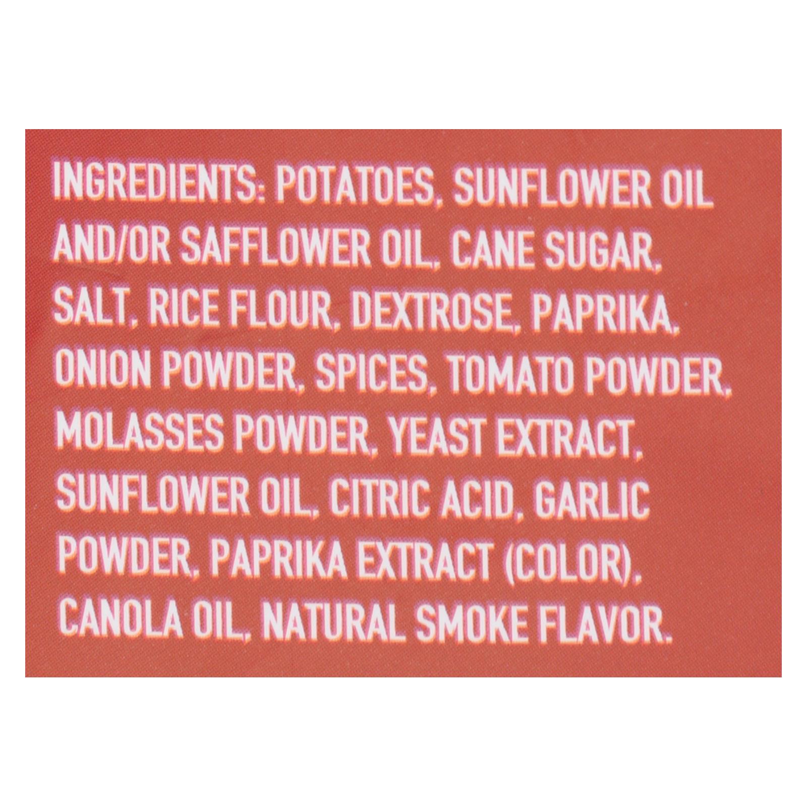ingredients : potatoes;sunflower oil and/or safflower oil;cane sugar;salt;rice flour;dextrose;paprika;onion powder;spices;tomato powder;molasses powder;yeast extract;sunflower oil;citric acid;garlic powder;paprika extract (color);canola oil;natural smoke flavor