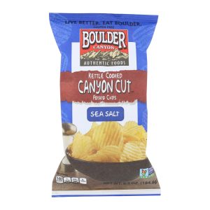 Boulder canyon sea salt canyon cut kettle chips are richly flavored and will deliciously satisfy your snack craving every time you have one. Inspired by the carved canyons outside our hometown, these ridged canyon cut chips are lightly salted with a hearty crunch and great potato taste. These are perfect for when you simply want a comforting flavor with a bold bite. Made from premium american-grown potatoes from an original family recipe, they’re kettle cooked and seasoned to perfection. Being low in sodium, made with only three simple ingredients, and only 140 calories per serving, you can now snack without even a hint of guilt on your conscience. Our boulder benefits include certified gluten free, non-gmo, vegan, no trans fats, no cholesterol, kosher, and green energy use. Includes 6.5 oz. Package. Boulder canyon authentic foods is proud to be among the natural food innovators out to prove that a better experience exists when using real food ingredients. Live better. Eat boulder.