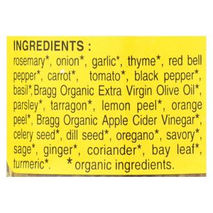 Bragg certified organic sprinkle seasoning is a 50 year favorite formulation by paul c. Bragg. A blend of all natural herbs and spices which adds flavor to most recipes, meals and snacks. Gluten free.