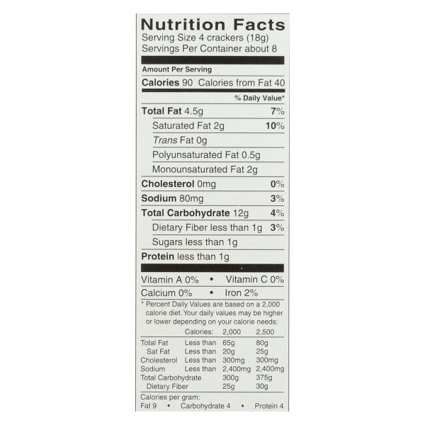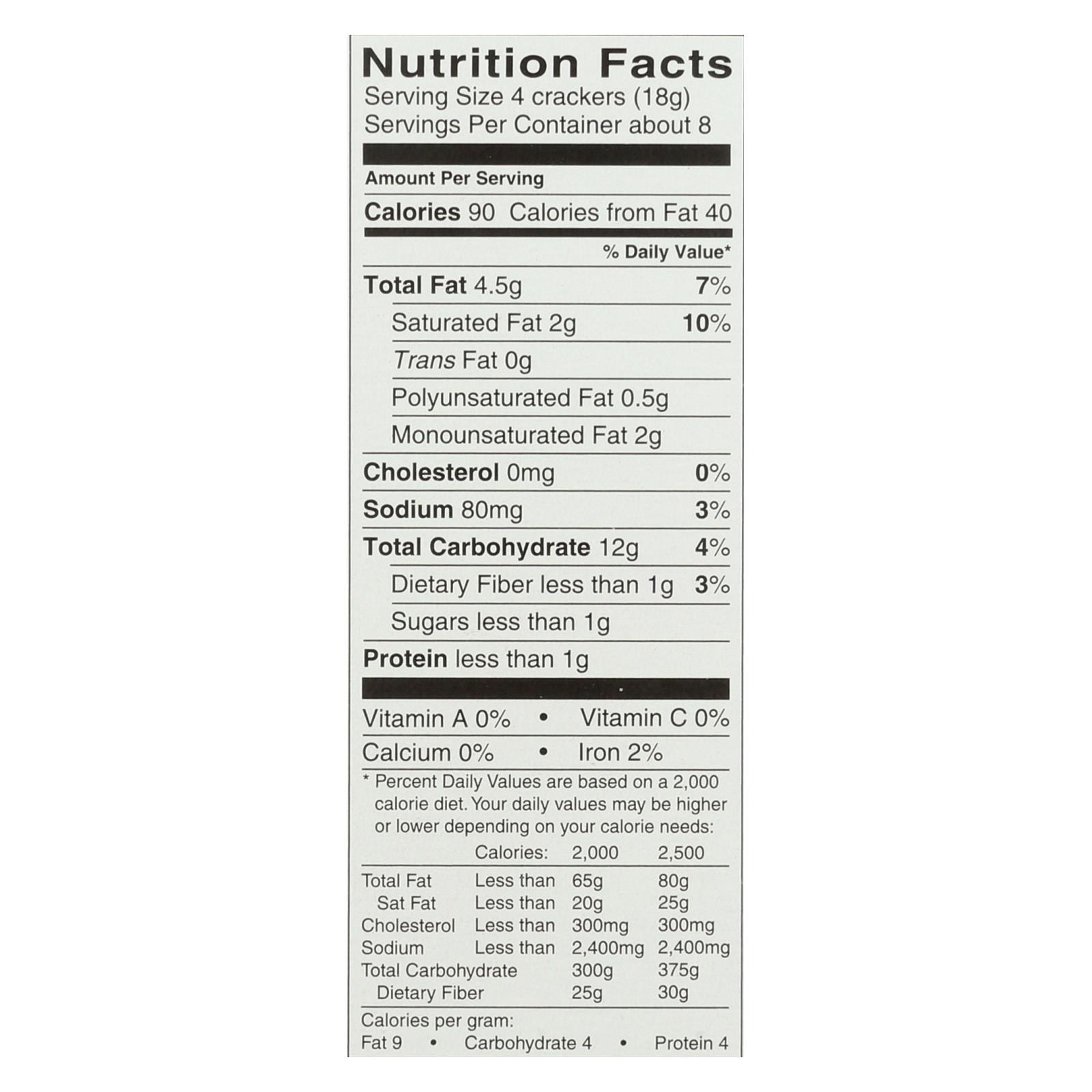 Dare breton gluten free original flax crackers are made with tapioca flour, canola and coconut oil, corn starch, green lentil flour, rice bran, sugar, flax seeds, salt, natural flavor, sesame seeds, xanthan gum, leavening, whey and soy lecithin. Each 4.76 oz. Box contains about 8 servings of 4 crackers each. Each serving has 90 calories.