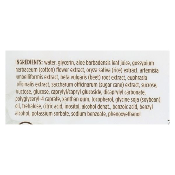 ingredients : water;glycerin;aloe barbadensis leaf juice;phenoxyethanol;polyglceryl-4 caprate;sodium benzoate;disodium cocoyl glutamate;citric acid;potassium sorbate;tocopherol;sodium cocoyl glutamate;honey;helianthus annuus (sunflower) seed oil;fructose;trehalose;glucose;sucrose;inositol;sodium citrate;oryza sativa (rice) extract;benzoic acid